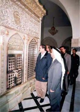 ![]() وهذه صورته وهو يلقي محاضرة في نفس المسجد المقام على الضريح |