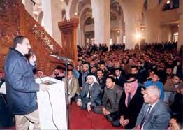 ![]() وهذه صورته وهو يلقي محاضرة في نفس المسجد المقام على الضريح |