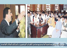 عمرو خالد خلال إلقائه محاضرة على متهمين بالتطرف في اليمن |